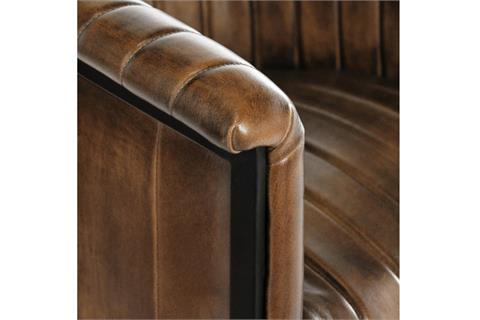 The Selene Leather Counter Stool features top grain leather with iron legs, showcasing vertical channeling for added texture and style. Its design creates a rich atmosphere, making it a perfect addition to any classic environment. The combination of premium materials and timeless design ensures both comfort and elegance for your bar or counter space.